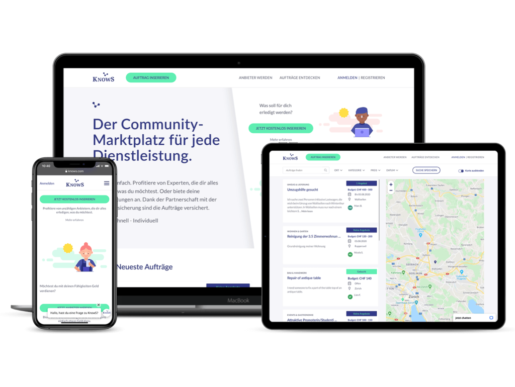 KnowS beauftragte uns mit Konzeption und Umsetzung einer Onlineplattform für jede Art von Dienstleistungen.
