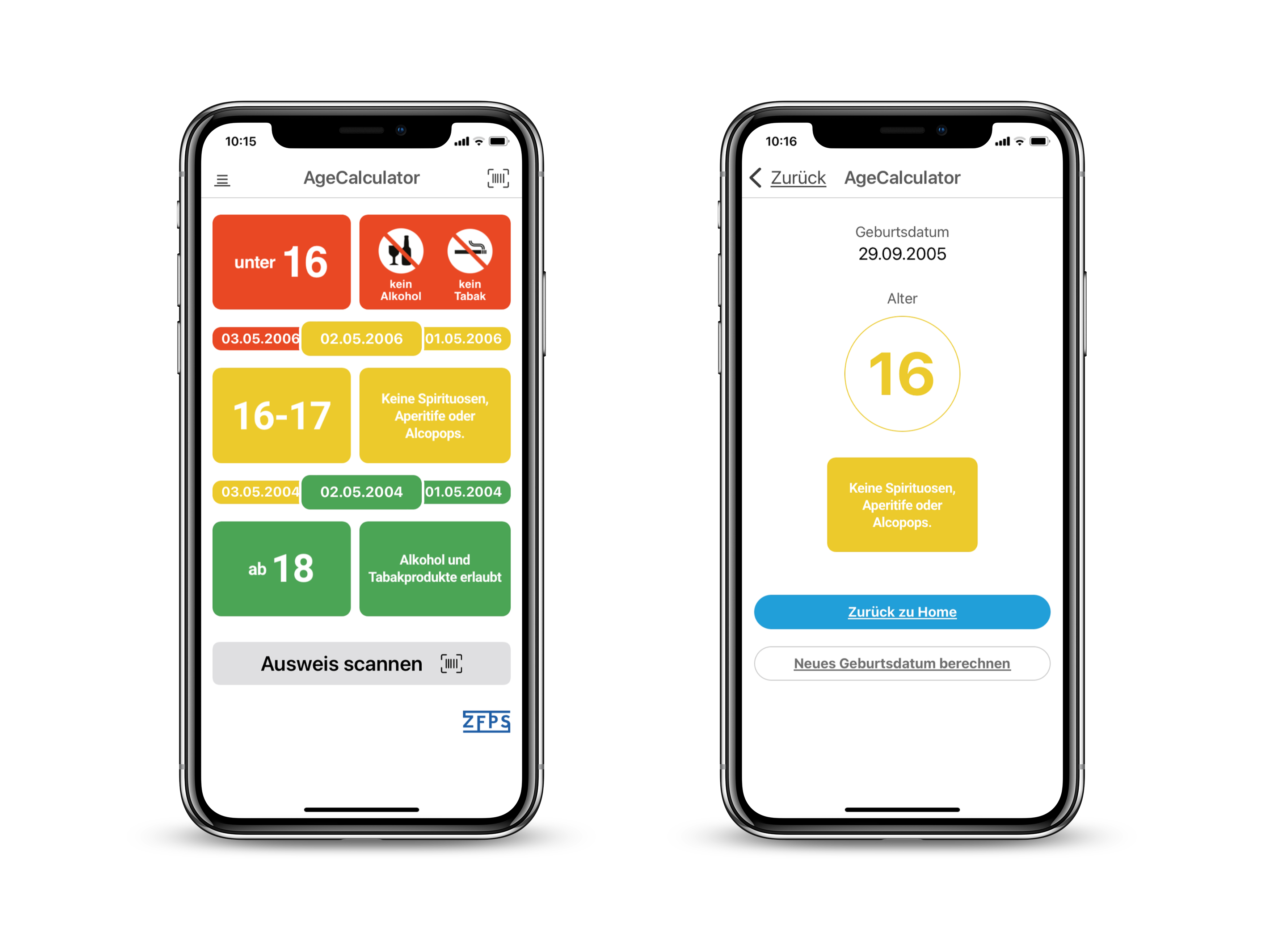 Die Zürcher Fachstelle zur Prävention des Suchtmittelmissbrauchs plant die Entwicklung der Mobile App „AgeCalculator“ zur einfachen Bestimmung des Alters einer Person, basierend auf dem Geburtsdatum. Neu kann das Alter noch rascher bestimmt werden mittels ID-Scan-Funktion.